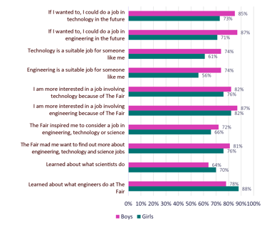 - 98% agreed The Fair highlighted a variety of careers in engineering and technology, providing students with an opportunity to see 'where STEM can take students'