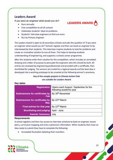 A climate action club is an extra-curricular club for students aged 11 to 14 to work on engineering or technology-based projects taking action to reduce a school’s and/or a community’s contribution to climate change. We recommend it take place once a week either after school or during lunch, and we provide resources for students to undertake their own projects on a range of themes.
