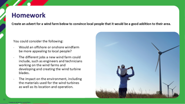 - Introduce some of the planning considerations when developing a new onshore wind farm