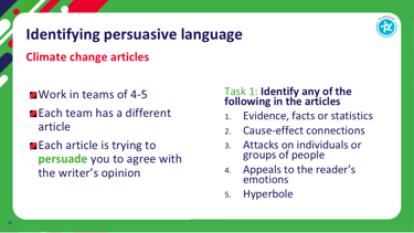 - Develop analysis skills to identify persuasive writing techniques