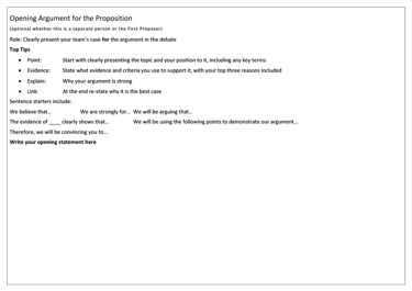 - Promote research and argument building skills