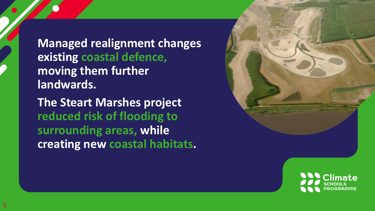 The Steart Coastal Management Project is one of the largest of its kind in the UK. The project included coastal realignment, and restoration of saltmarshes to reduce the risk of flooding in the area.