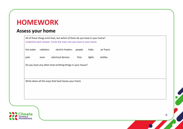 - Get students thinking about the production of heat in their own home - and, by thinking like engineers, how to reduce the amount of heat lost