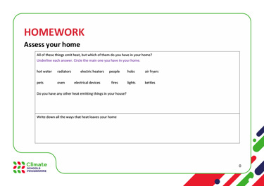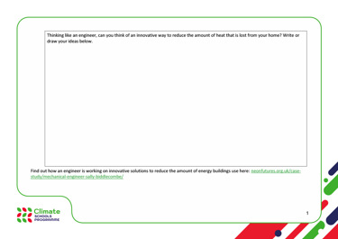 - Get students thinking about the production of heat in their own home - and, by thinking like engineers, how to reduce the amount of heat lost