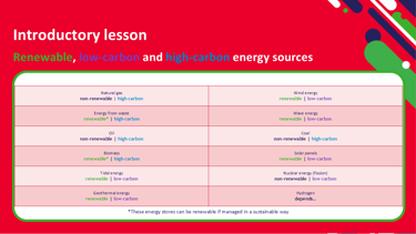 Compare the different renewable and low-carbon energy sources