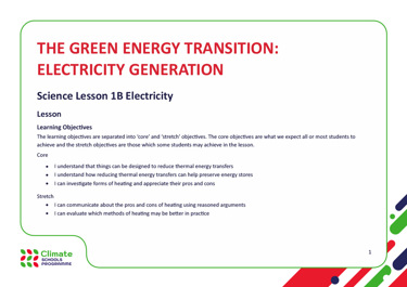 - Climate Schools Programme slide deck lesson 1B – electricityÂ