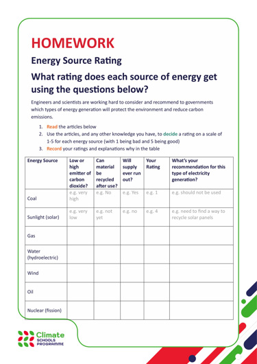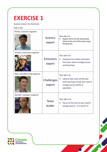 - Climate Schools Programme student worksheets lesson 1B – electricityÂ