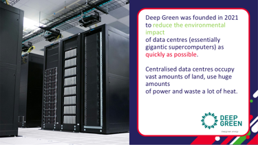 Deep Green build low-carbon data centres across the UK, and even use AI farms to heat public swimming pools. Introduce your students to low-carbon data centres and the team behind Deep Green with this resource package.