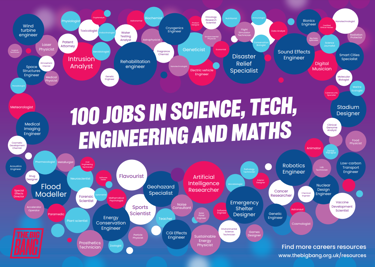 Whatever their interests or skills, there's a job in STEM for every student. Download our poster and highlight 100 exciting job roles that link to STEM.