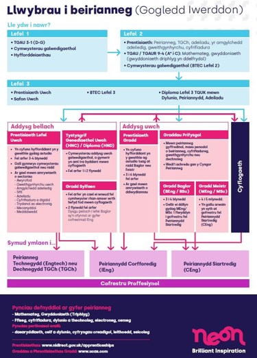 Career pathways into engineering and technology for young people in Northern Ireland are varied. From GCSEs, BTECs and A levels to apprenticeships, TQUK Diplomas and degree courses. Make the process of deciding next steps easier with our bright and colourful route map. It shows in detail the possible routes into an engineering/technology career, through education and training in Northern Ireland.