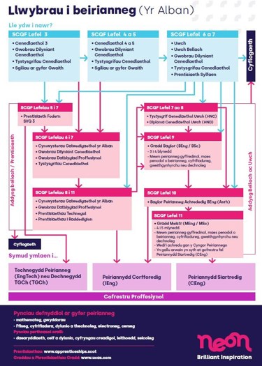 From National Qualifications, Highers and National Progression Awards to modern apprenticeships, degrees and Higher National Certificates students in Scotland have a range of pathways to choose from. Make the process of deciding next steps easier with our bright and colourful route map. It shows in detail the possible routes into an engineering/technology career, through education and training in Scotland.