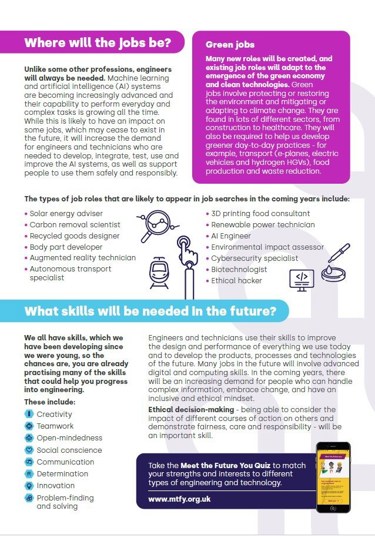 It also highlights where the jobs will be and what skills will be needed in the future. Parents, carers, educators and careers advisors will also find this leaflet useful to support conversations with young people.