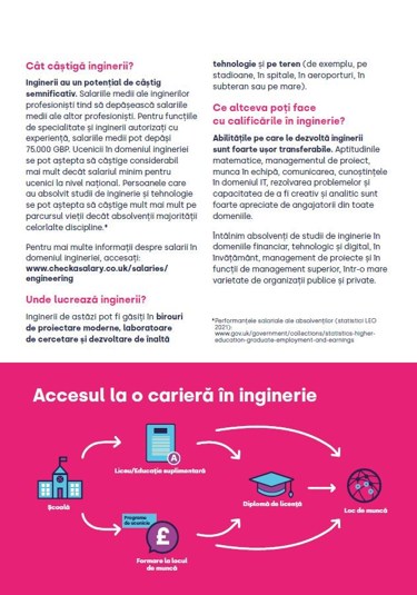 Parent and carer guide to engineering (Romanian language version). Perfect for parent's evening, this booklet supports secondary school teachers to speak to parents at your school. Share with parents to support their child's STEM skills, passion and talent with our parents' guide to engineering careers.