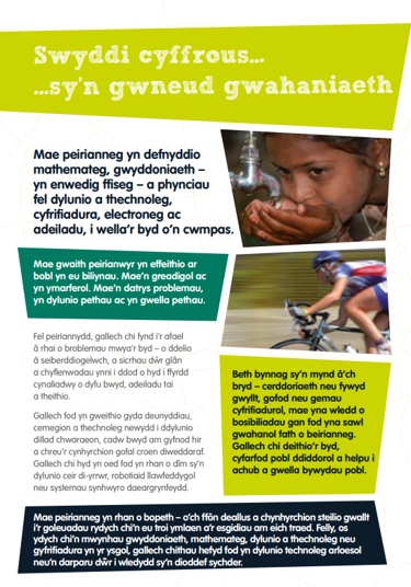 Put engineering into context for your class with the Welsh language version of the What is engineering? booklet. In 8 pages this guide supports students and teachers understand engineering. Answer all the big questions such as what engineering is, why it's important and how it makes a difference.